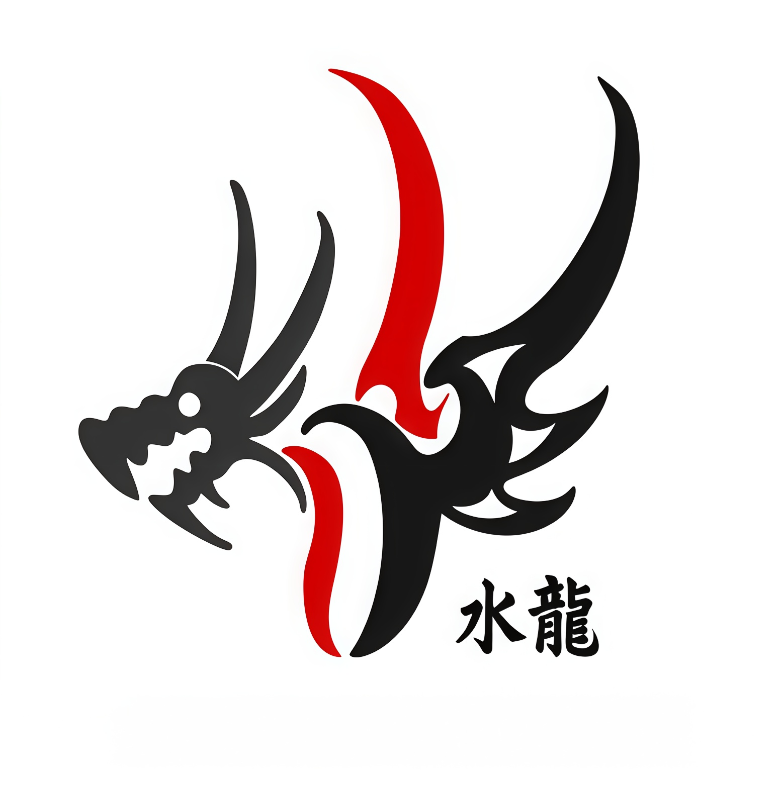 Иероглифы 水龍 («водяной дракон») подчёркивают связь древней символики с природной стихией рыбалки.